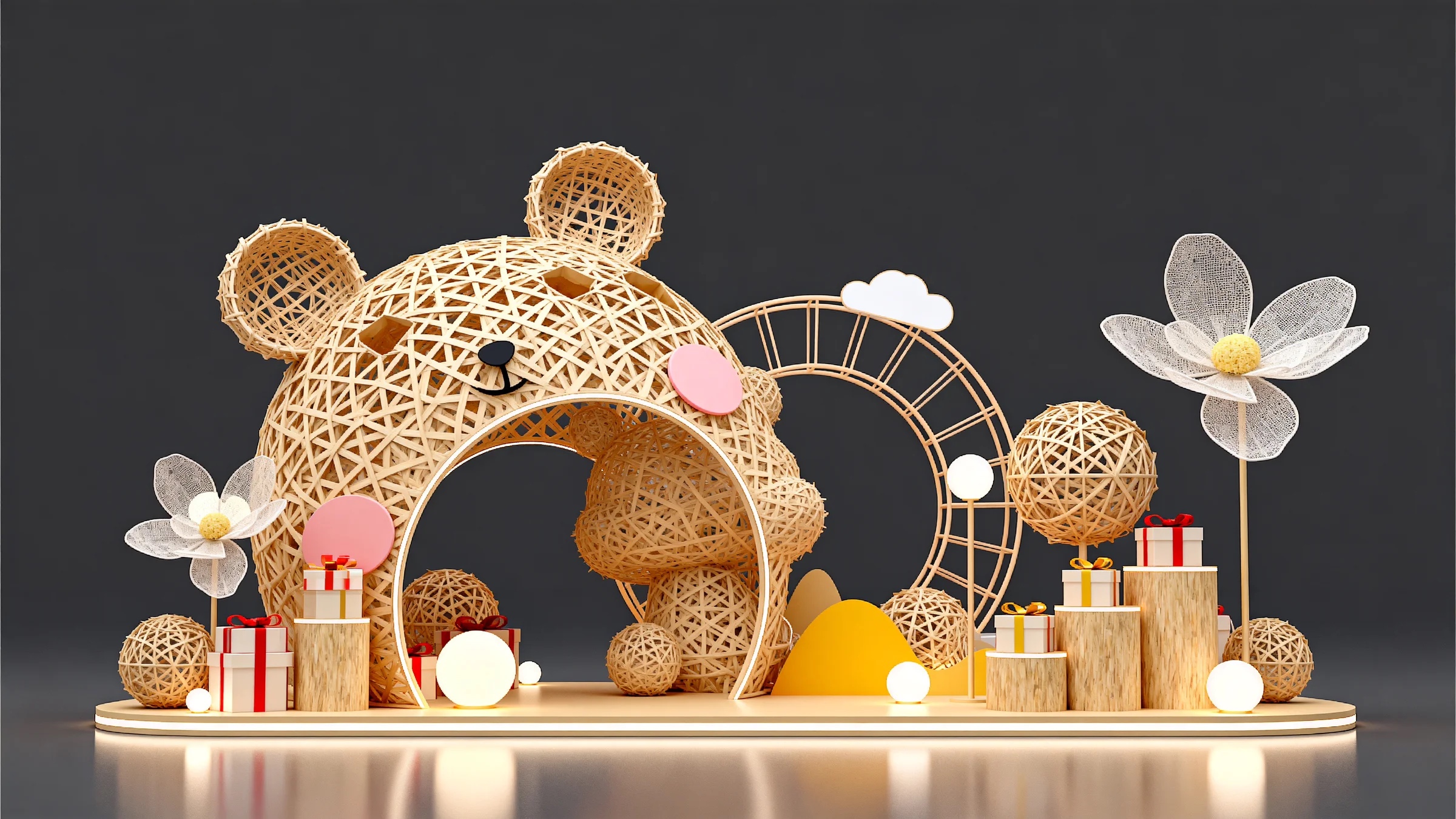 美陈与展厅设计 是品牌视觉落地 与空间表达的 核心载体, 它们不止涵盖 基础装饰造型 与空间布局规划, 更延伸至氛围营造、 材质搭配、 展陈逻辑等关键要素, 通过系统化设计, 让品牌在各类场景中 传递一致气质, 成为链接消费者、 展现品牌价值的重要媒介。